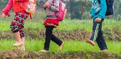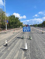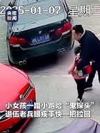 伸手(扌)拦住马路上的孩童,防止被车撞着。
